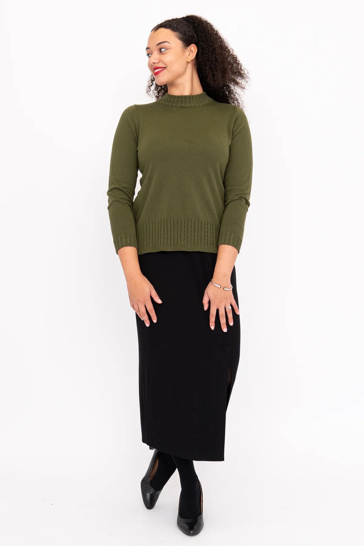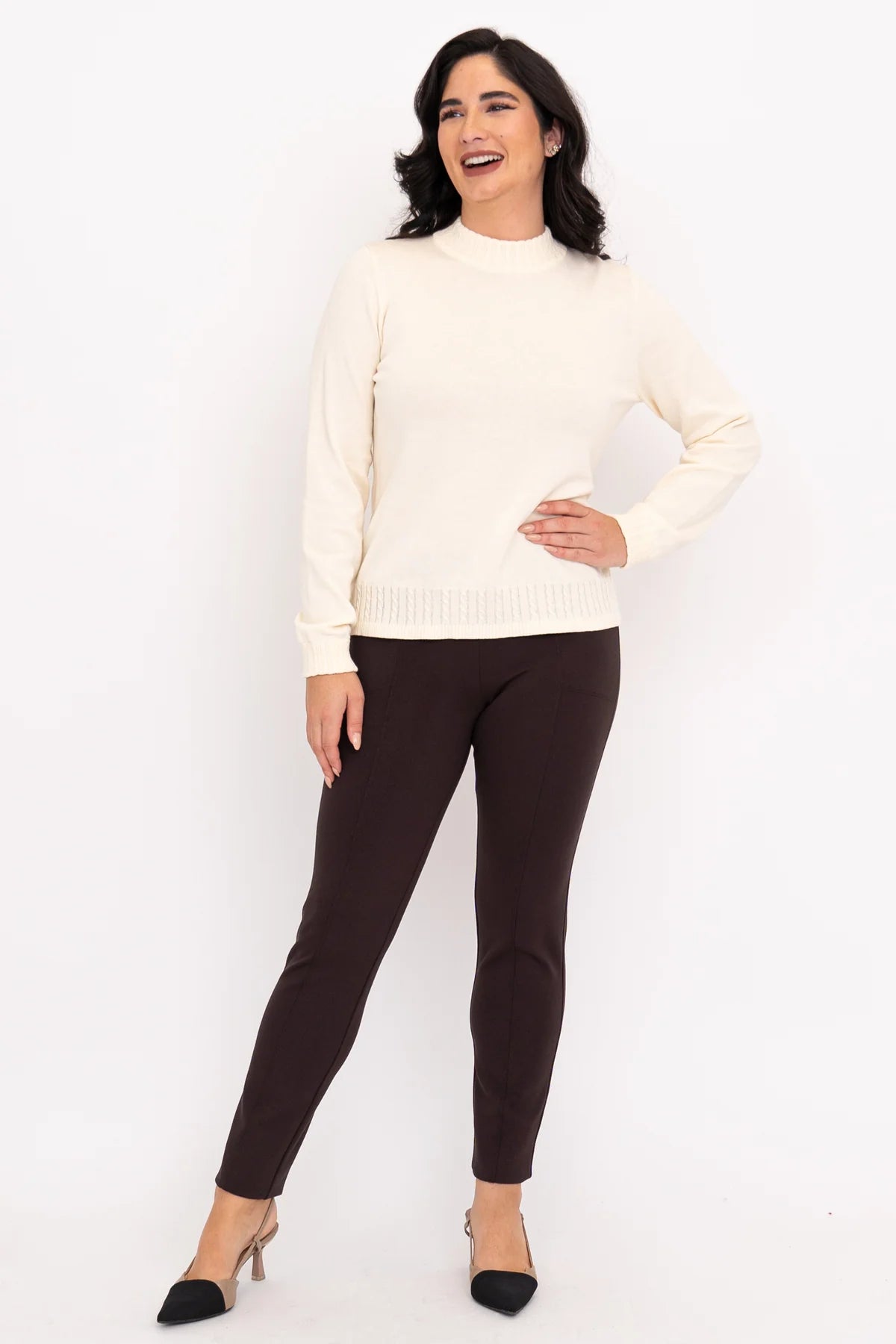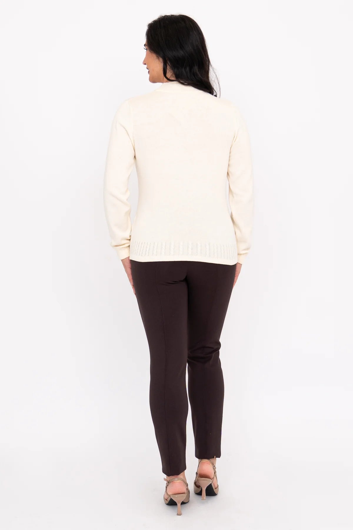 Ella Sweater is a timeless essential crafted from 100% cotton, offering breathable comfort with a cozy mock neck. Cable knit details at the neckline, cuffs, and hemline add playful texture and style, making it perfect for everyday wear.