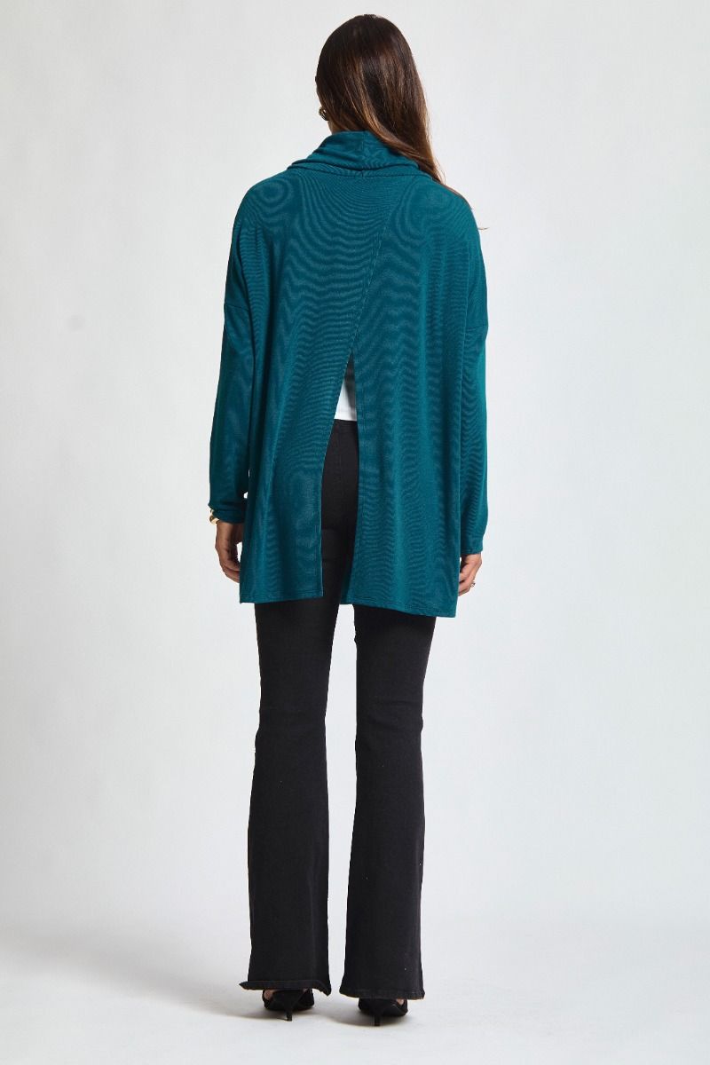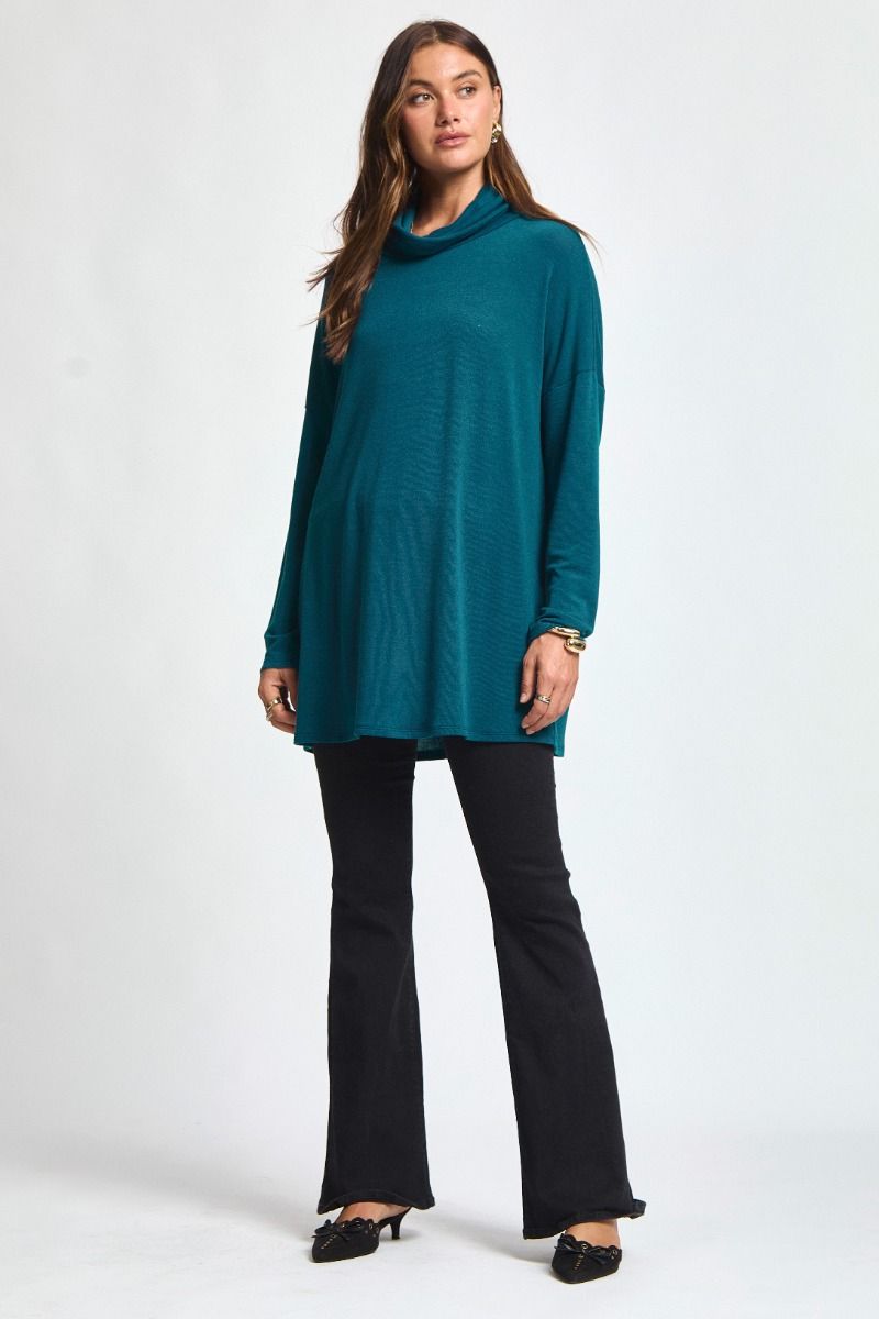 Beautiful tunic top featuring a cowl neck with open back detail. We love the soft, stretchy fabric on this top and its easy fit.