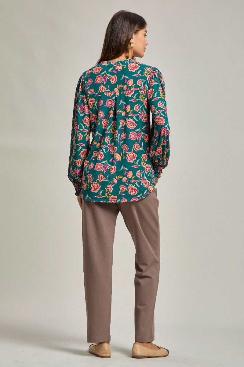 Bring charm and comfort to your everyday style with the Lizzy Top. Designed with a flattering mandarin collar and softly puffed sleeves, this piece adds a feminine touch without the fuss. The smocked sleeve detail elevates the look, while the wrinkle-free stretch fabric keeps you feeling fresh and polished from morning to night.