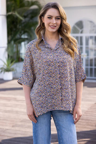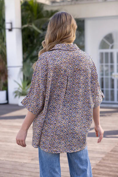The Tiny Tale Printed Top offers two charming designs in one versatile piece. One features a crisp white base with delicate black branch motifs, creating a subtle, nature-inspired pattern, while the other showcases a soft base covered in tiny, multicoloured floral prints. Comfortable and easy to style, this top is perfect for brightening everyday outfits, layering under jackets, or pairing with your favourite jeans for a polished yet relaxed look.