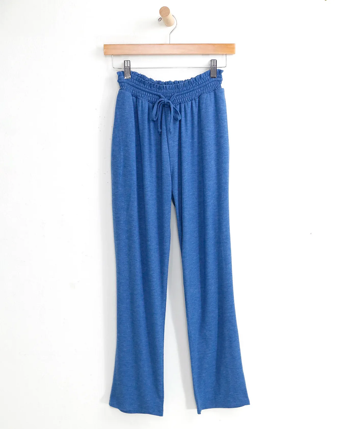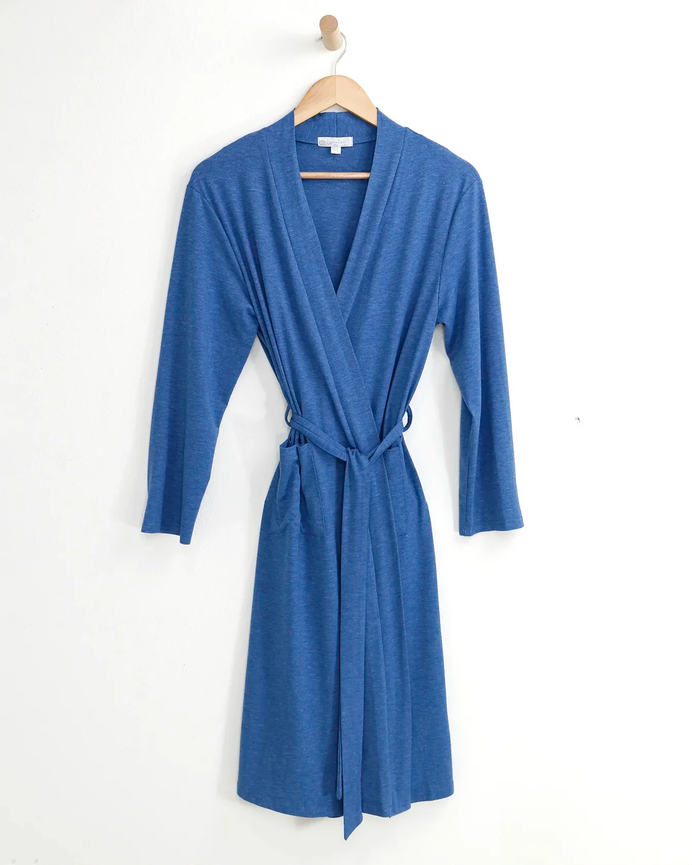 3-Piece lounge set featuring robe, tank and pants.  The robe is long sleeve with interior functional waist tie closure and exterior functional and removable waist tie.  The tank has adjustable spaghetti straps and a scoop neck.  The pants have a smocked waistband with functional waist tie and straight leg.  The fit is relaxed casual, order your normal size.  Between sizes may be able to size down for a slimmer fit.