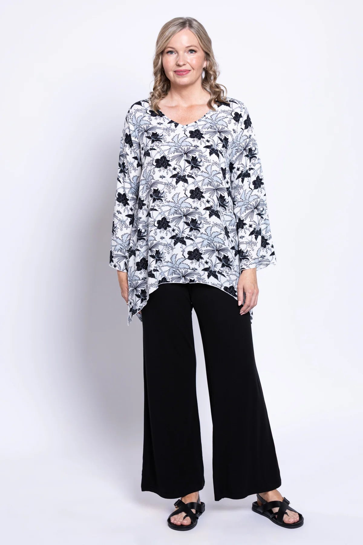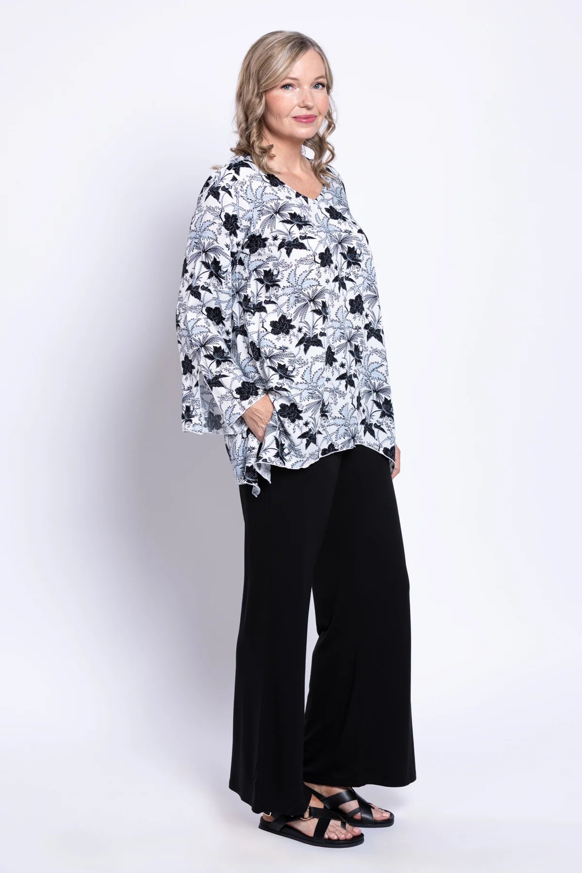 The Dorothy Top is the ultimate flowy bohemian piece your wardrobe has been waiting for. Designed with a flattering V-neckline, elegant bell sleeves, and a soft shark-bite hemline, it offers movement and effortless style. Made from 100% plant-based, wrinkle-resistant rayon, this top combines comfort with an easy, carefree charm. Pair it with leggings or wide-leg trousers for a relaxed, boho-inspired look.