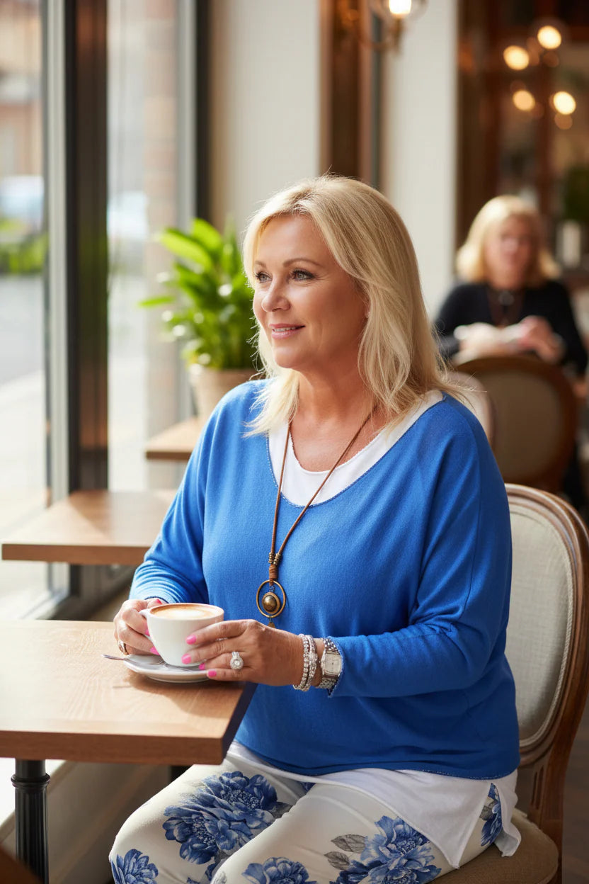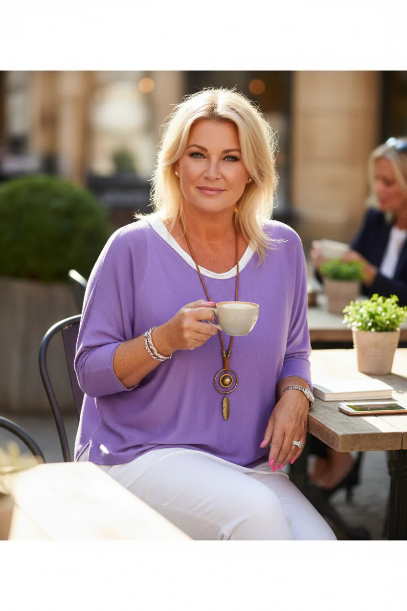 Beautiful 3 piece outfit including a 3/4 sleeve cotton top, tank, and necklace to accessorize.