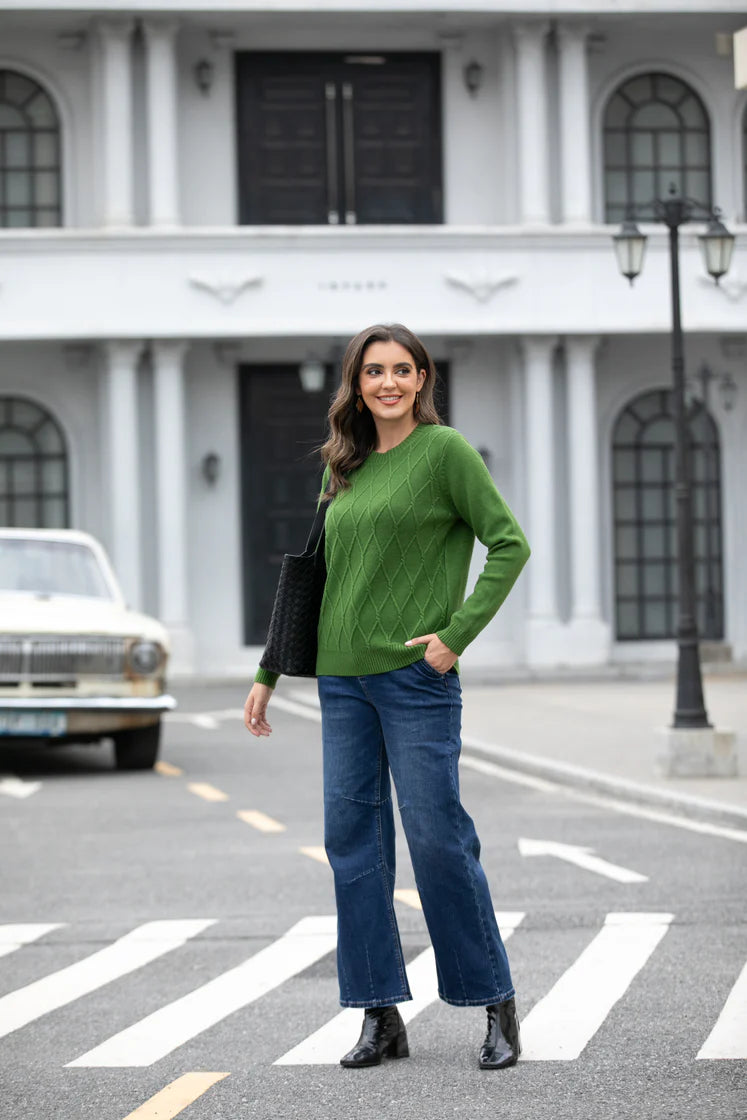 Elevate your style with our Argyle Jacquard Sweater Top — a perfect blend of bold design and everyday comfort. The front features a striking argyle jacquard pattern that adds a touch of sophistication, while the solid back keeps the look versatile and easy to pair. Crafted from soft, cozy fabric, this sweater top lets you stand out in vibrant colours without compromising comfort.
