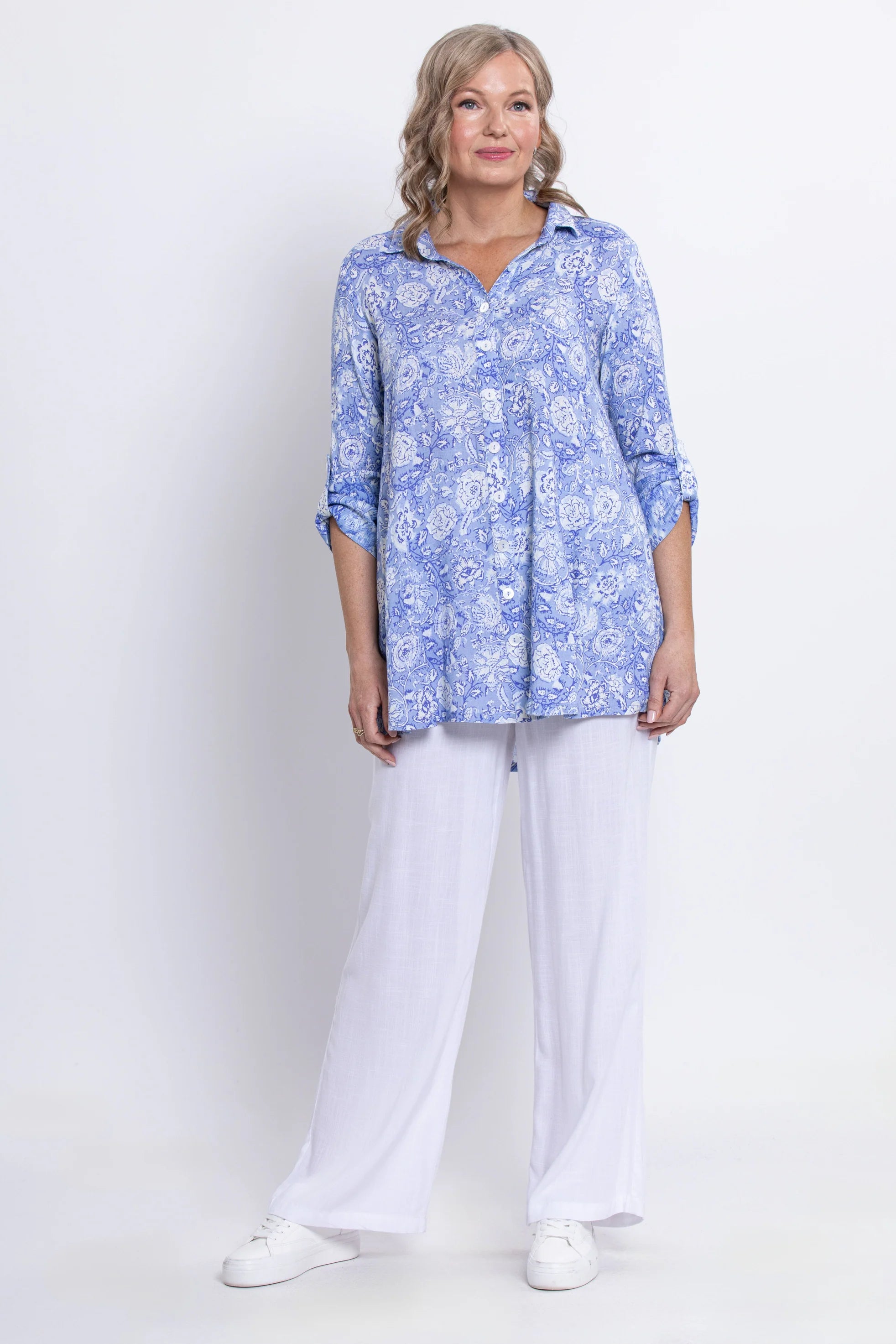 Effortless and flattering, the Celine Tunic is crafted from a soft bamboo/linen blend that drapes beautifully on the body. Designed with an easy oversized fit, it features a classic shirt-style shoulder, a structured collar, and a full button placket for a timeless look.