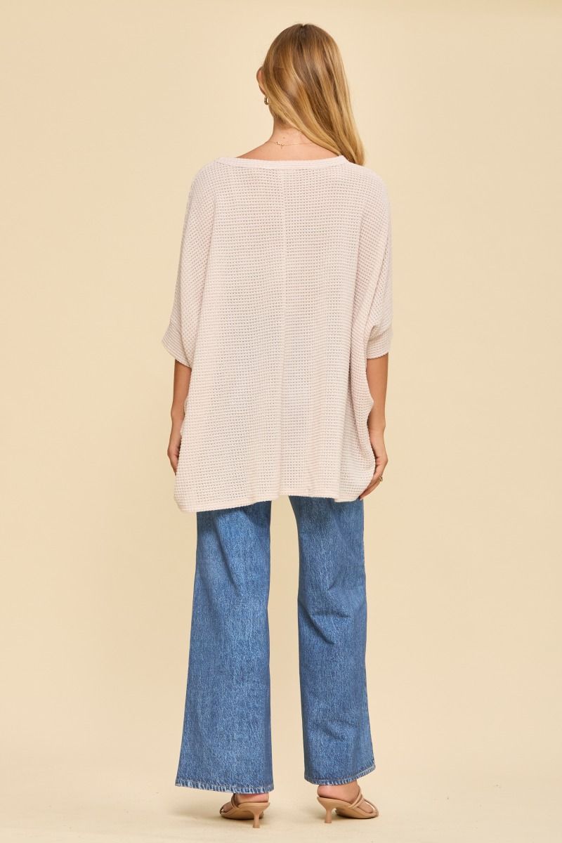 This oversized poncho top is crafted from soft, breathable crochet fabric, offering a relaxed fit and effortless style. Its loose, flowy silhouette makes it an easy go-to piece for casual wear, while the lightweight, stretchy knit is perfect for layering over your favourite tops.