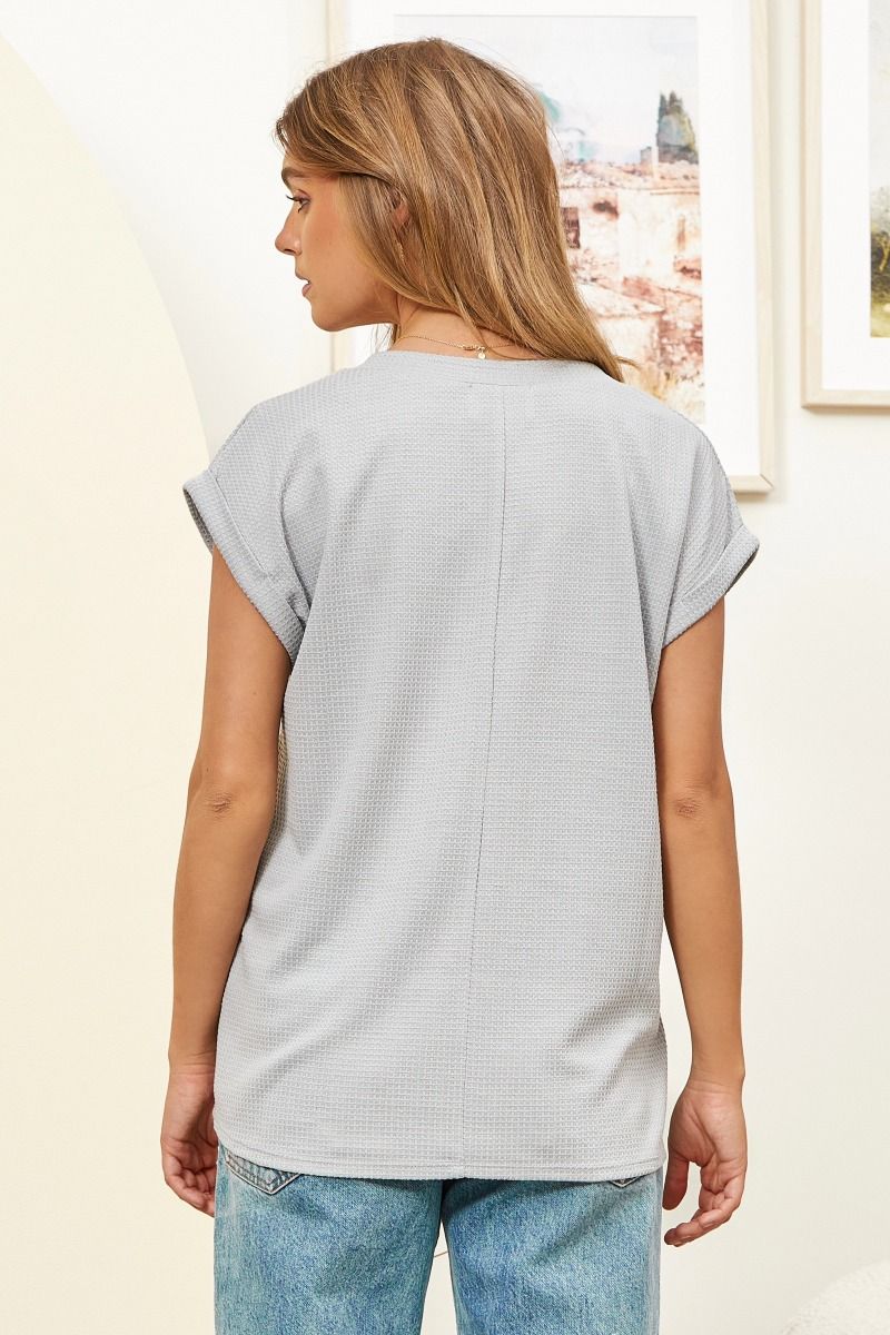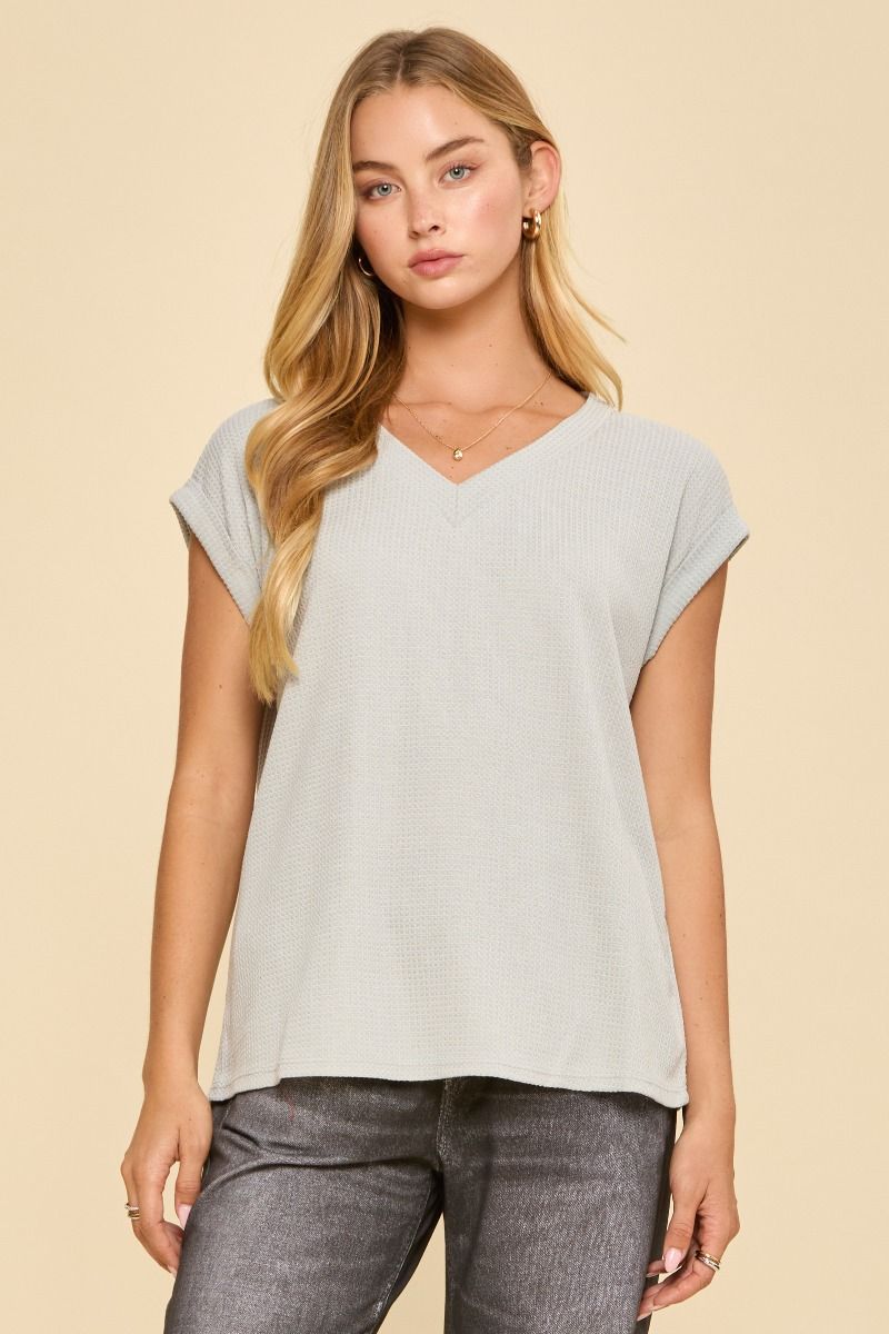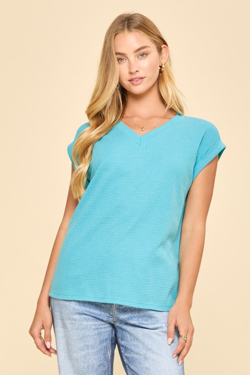 Stay comfortable and stylish in this two-tone thermal top, designed with a flattering V-neckline and short dolman sleeves for a relaxed, effortless look. Its soft, stretchy knit fabric ensures all-day comfort while maintaining a polished appearance.