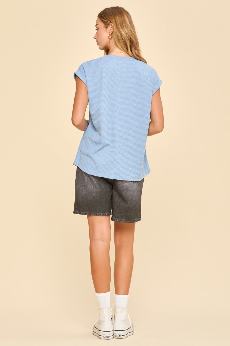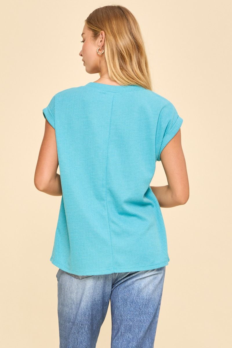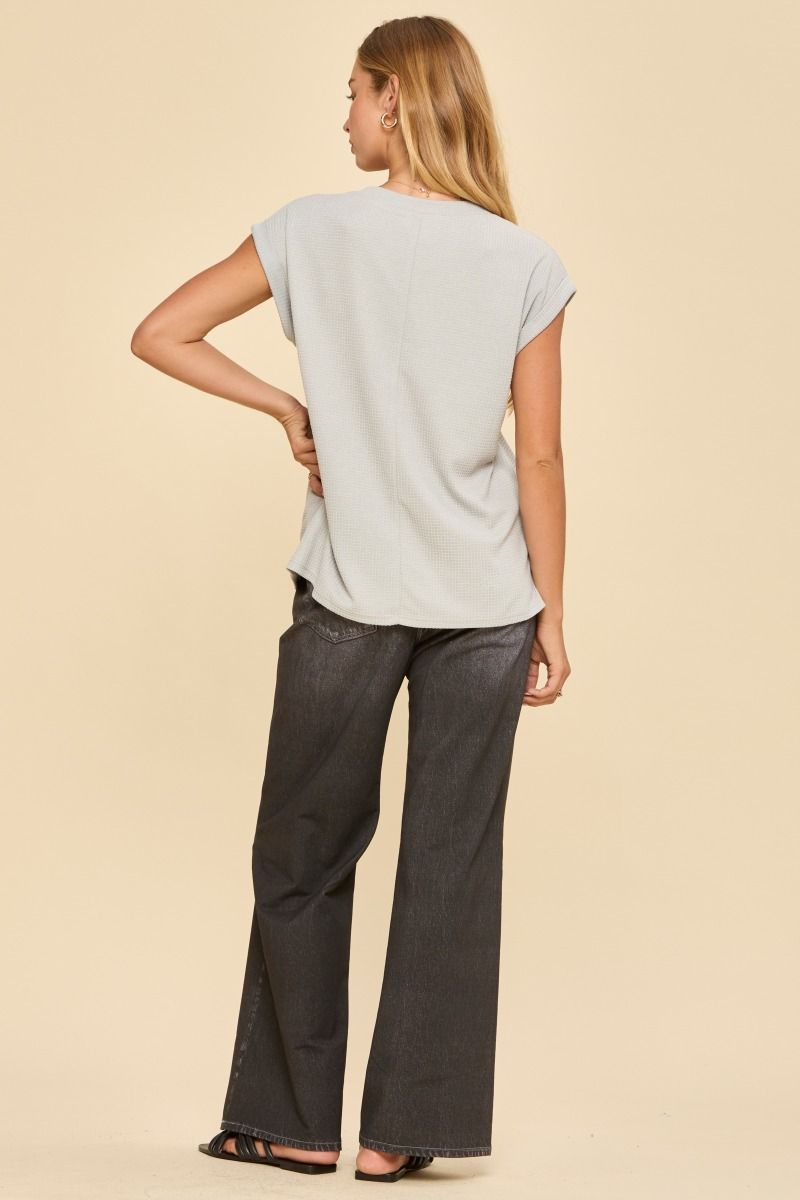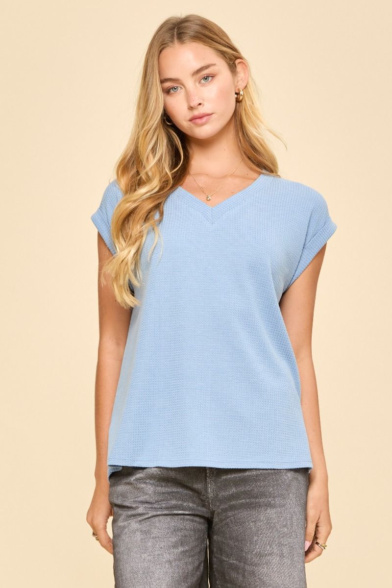 Stay comfortable and stylish in this two-tone thermal top, designed with a flattering V-neckline and short dolman sleeves for a relaxed, effortless look. Its soft, stretchy knit fabric ensures all-day comfort while maintaining a polished appearance.