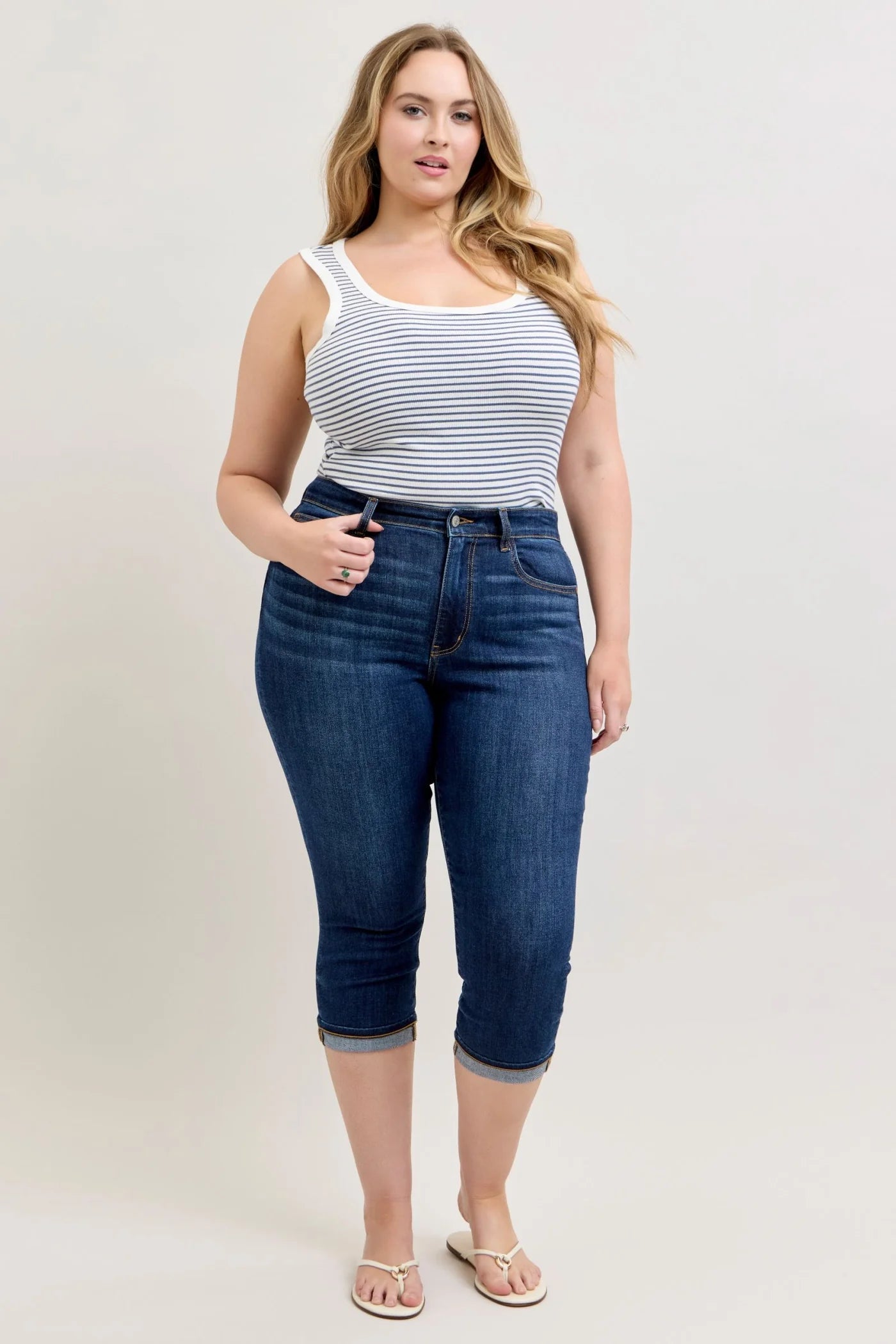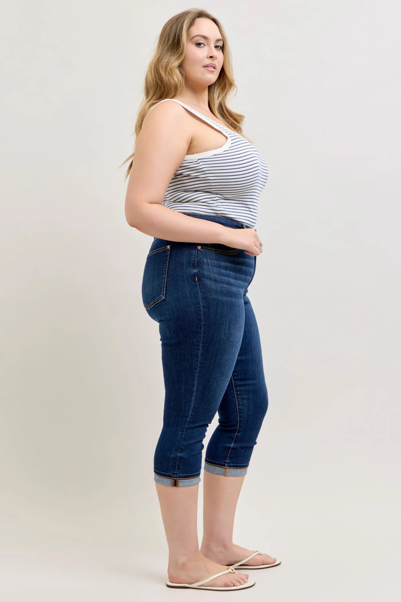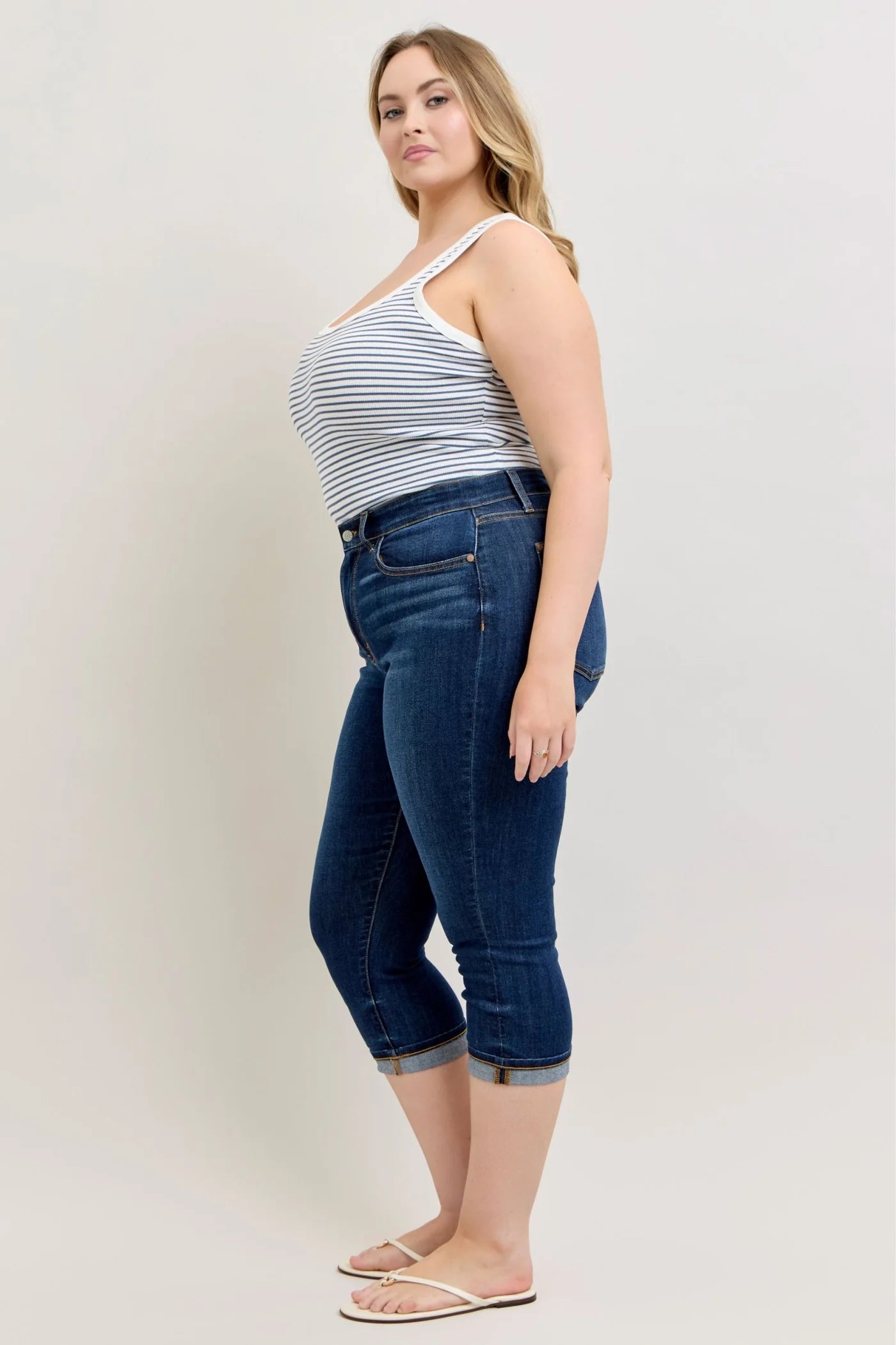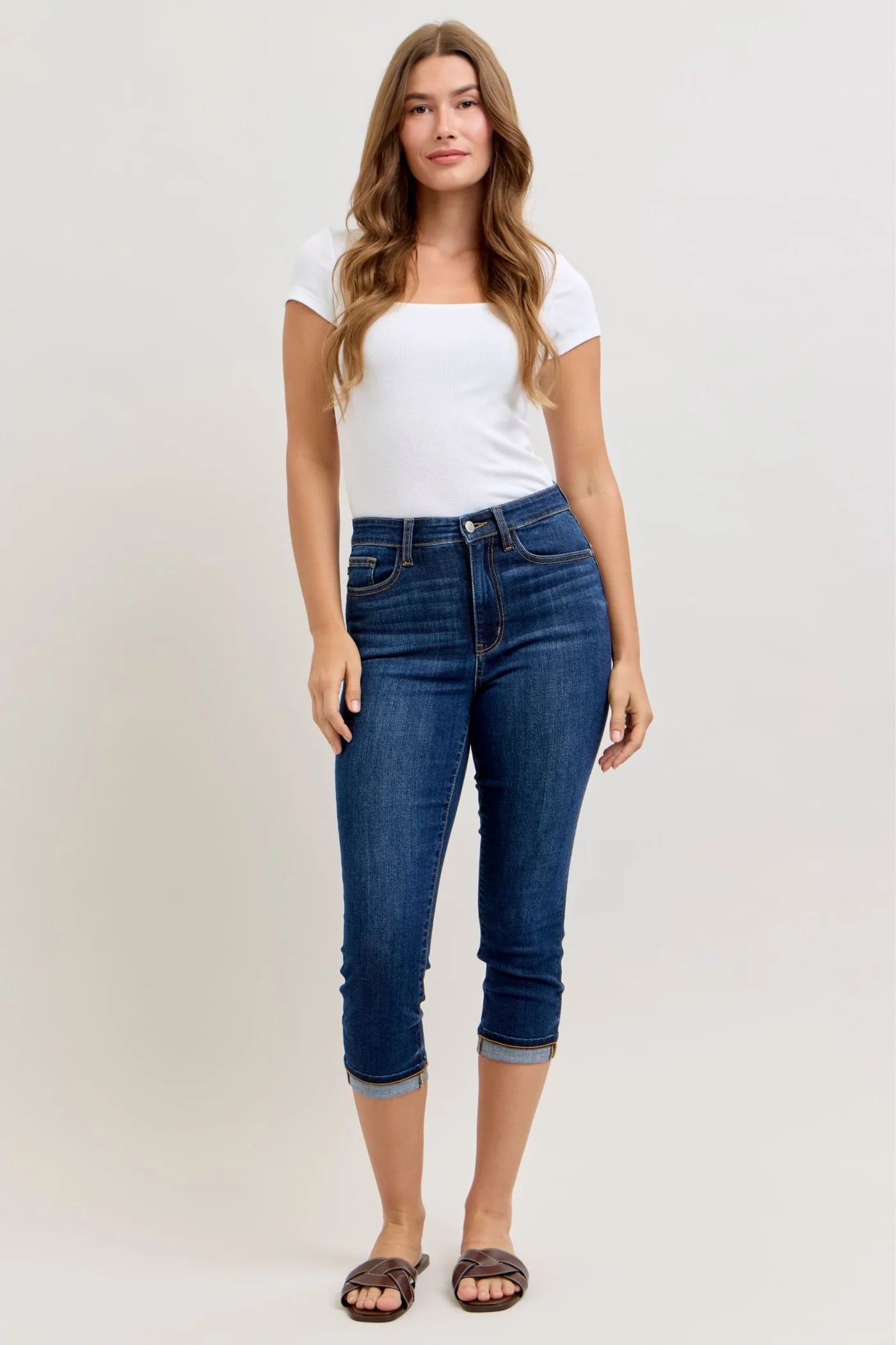 High Waist Capri with Single Cuff