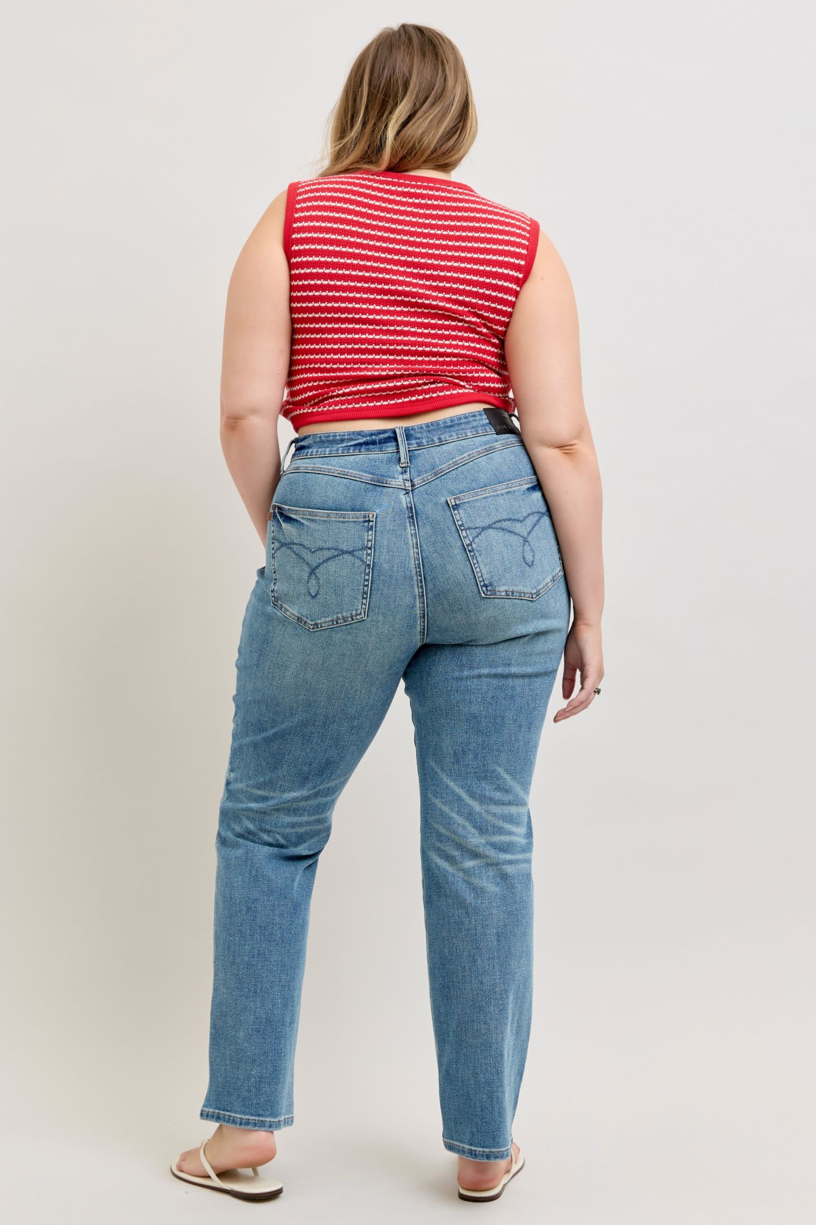 Effortless, flattering, and versatile, the High Waist Tummy Control Slim Straight Jeans from Judy Blue are designed to hug your curves while providing all-day comfort. Made from a soft, stretchy blend of 81% cotton, 16% polyester, and 3% lycra, these jeans offer a slimming high-rise waist and a straight-leg fit that elongates the silhouette for a polished, everyday look.