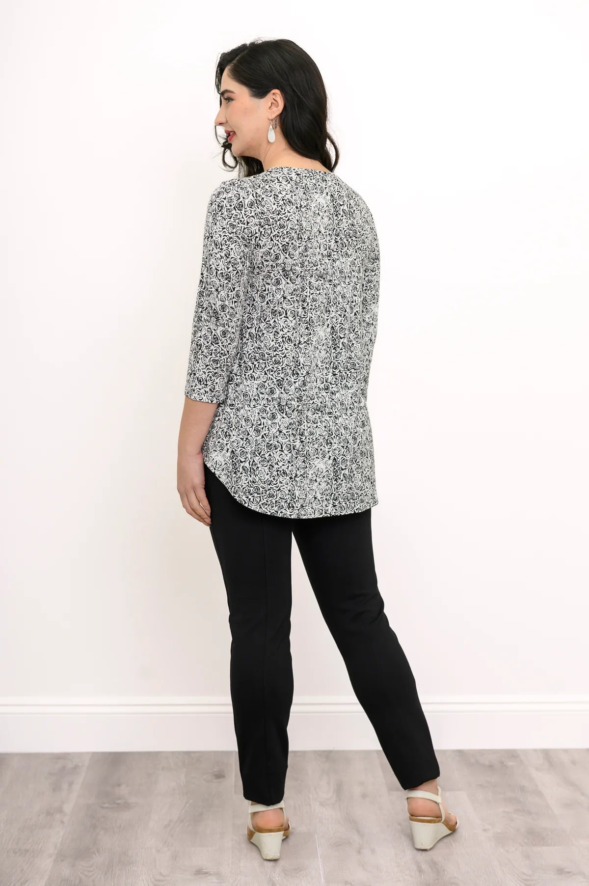 Our best-selling Jazz 3/4 Top combines effortless comfort with soft, breathable bamboo fabric. Its relaxed, fuller shape allows the fabric to float gently away from the body, providing a flattering fit that moves with you. A longer hemline adds coverage, making it a versatile top for everyday wear.