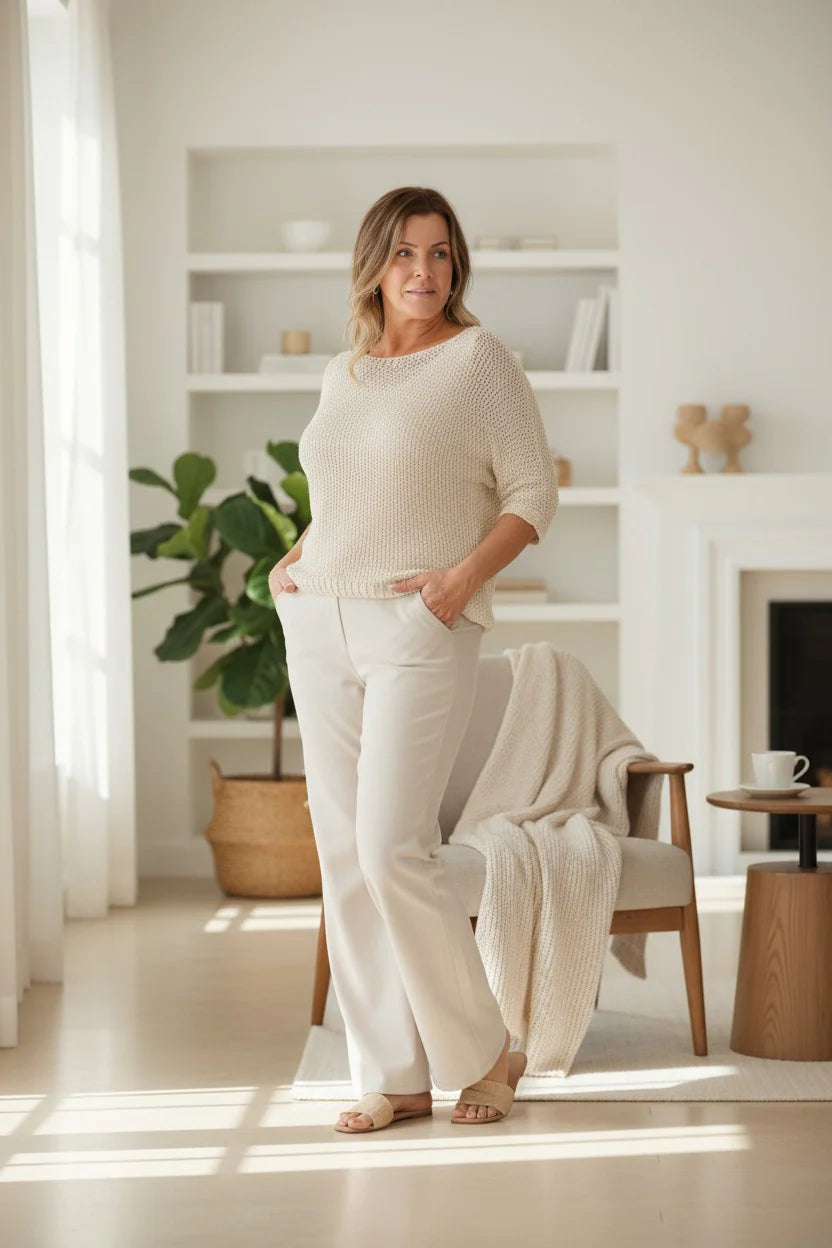 A soft knit top with 3/4 sleeves and subtle sequin detailing for a hint of sparkle. Easy to dress up or down for day or night. ✨