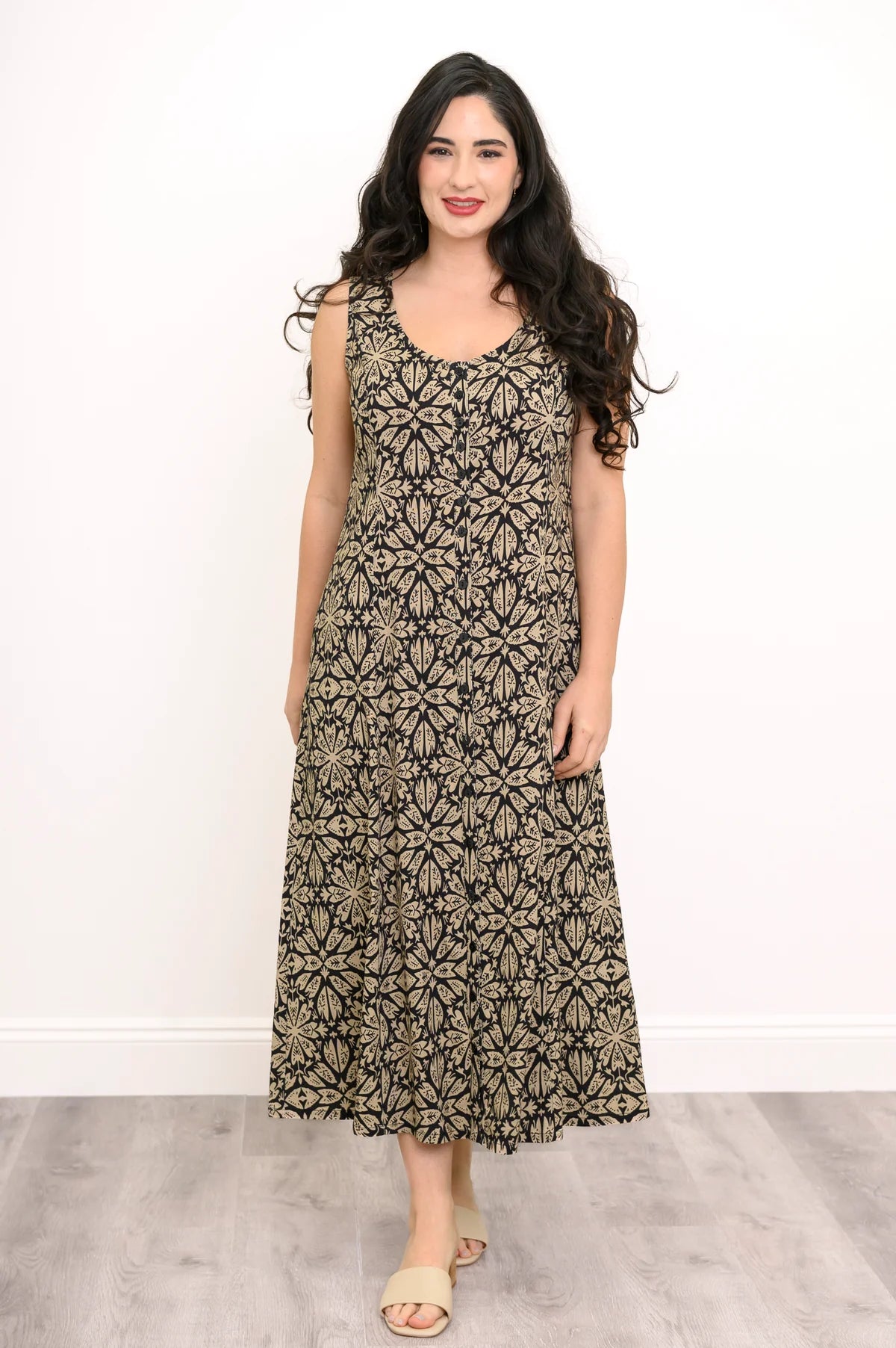 The Madison dress is a versatile and comfortable maxi dress made from soft, breathable linen and bamboo. It features a scoop neckline, full front buttons, and pockets, making it both stylish and practical. Pair it with a cardigan or jacket for a layered look that works for any occasion.