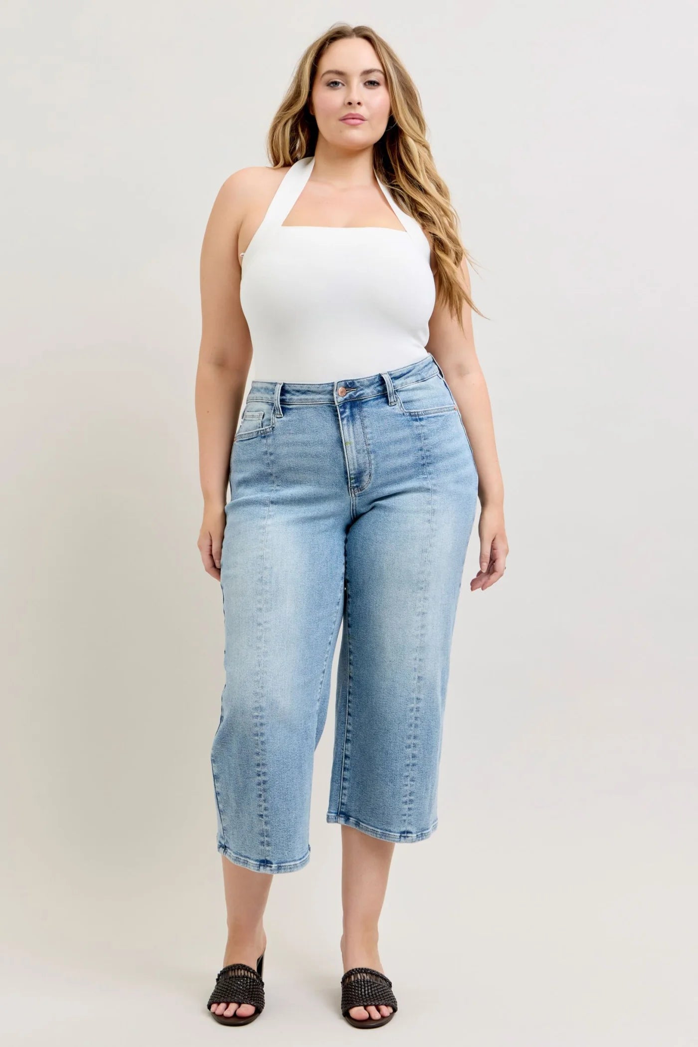 • Wide cropped leg