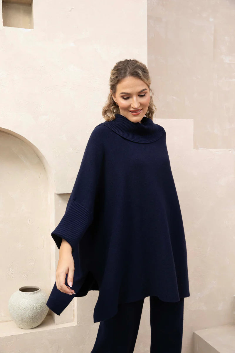 Crafted with a relaxed, forgiving fit, it offers the perfect balance of comfort and sophistication. Side splits add ease of movement and a modern touch to the silhouette, while the 3/4 cuffed rib sleeves bring a casual yet refined finish. The ribbed turtleneck provides extra warmth and texture, making this piece ideal for cooler days.