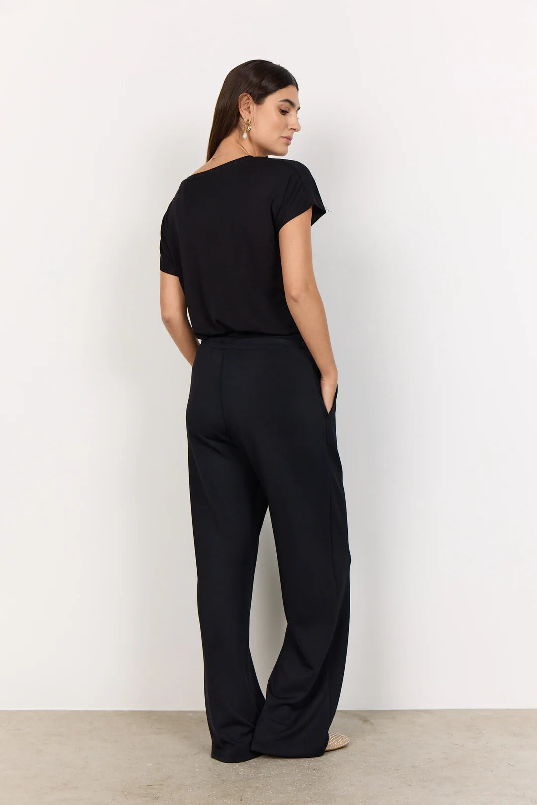 The BANU 265 pants are made from a soft and comfortable blend of 48% Modal, 48% Polyester, and 4% Elastane. These full-length pants feature a comfortable elastic drawstring waist and sleek side pockets, making them perfect for both casual and refined looks. Pair them with a soft sweater or a tailored shirt for effortless style.