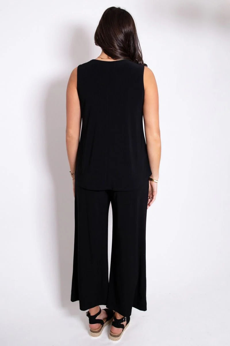 Gorgeous, breezy, and effortlessly flattering, this wrinkle-free solid pants is the perfect choice for spring and summer. The sleeveless blouse combines comfort and style, while the matching bottoms with an elastic waistline offer a relaxed fit that keeps you cool on warmer days. Perfect for travel, leisure, or casual outings, this set transitions seamlessly from day to night.