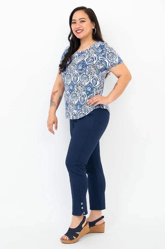 The Tessa Tee is a classic top that provides comfort through its thoughtful design and soft bamboo fabric. The slightly flowy shape gently drapes for a flattering fit, while the curved hemline adds extra coverage, making it perfect for everyday wear.